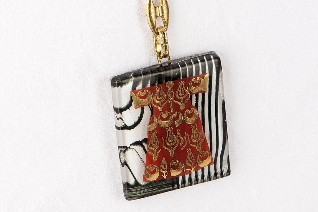 Cam füzyon siyah-beyaz kaftan anahtarlık. %10 altın içerir.