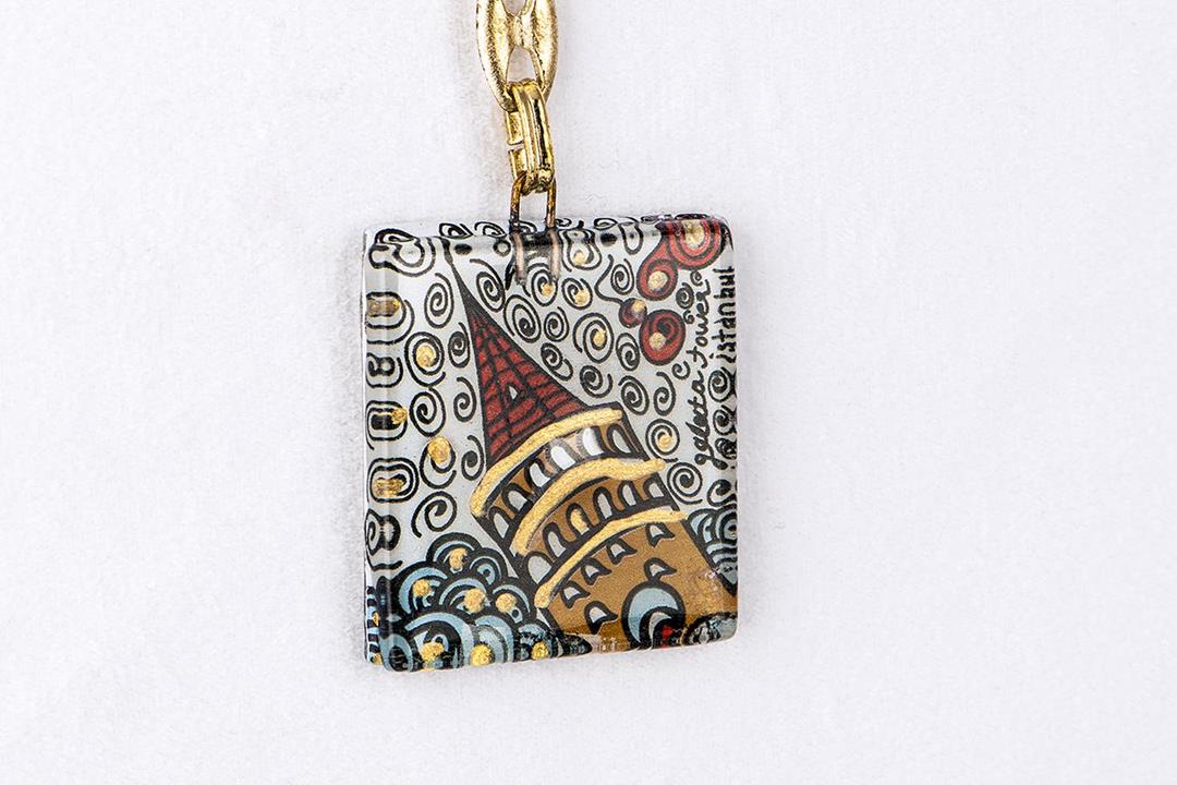 Cam füzyon galata kulesi minyatür anahtarlık. %10 altın içerir.