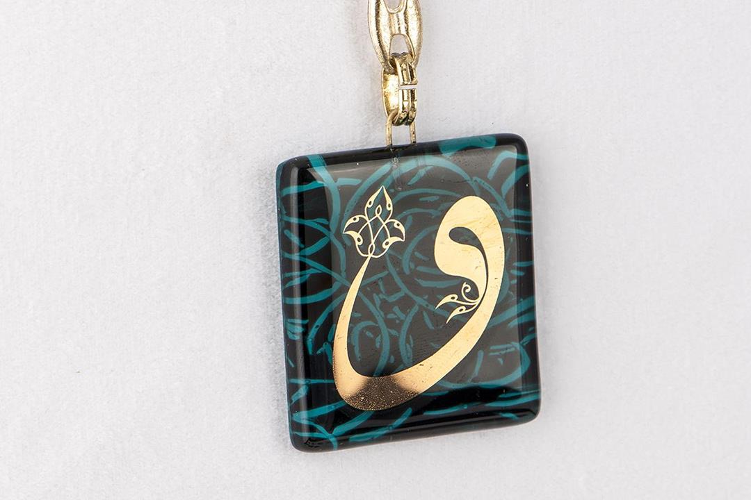 Cam füzyon yeşil-siyah vav anahtarlık. %10 altın içerir.