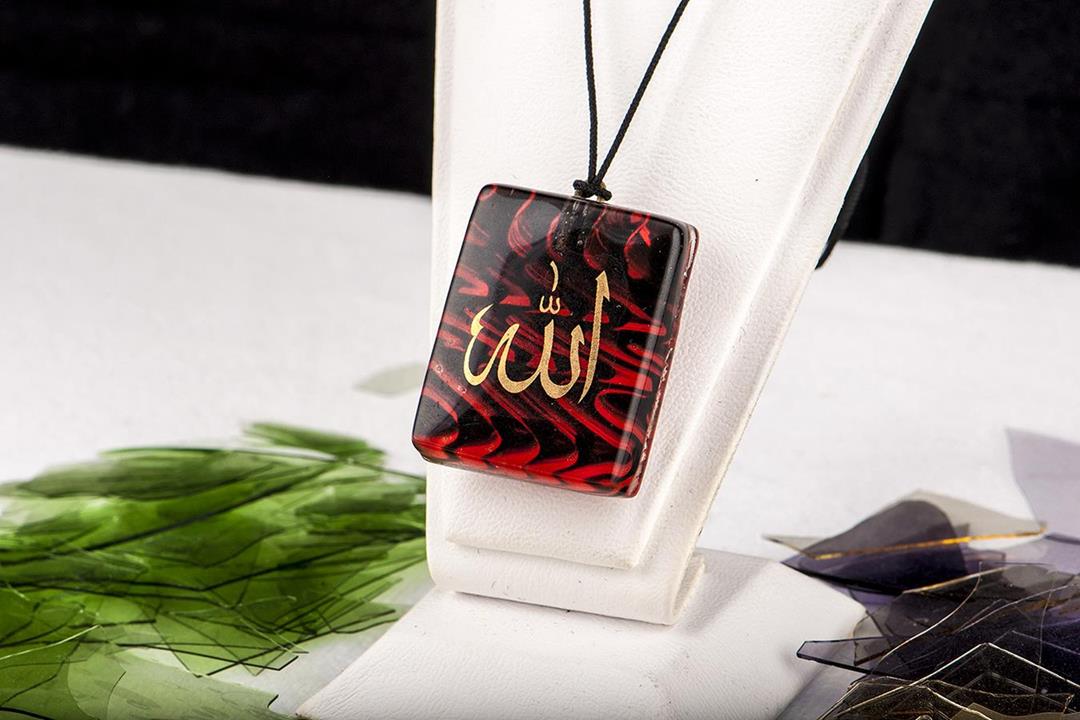 Cam füzyon kırmızı-siyah Allah kolye. %10 altın içerir