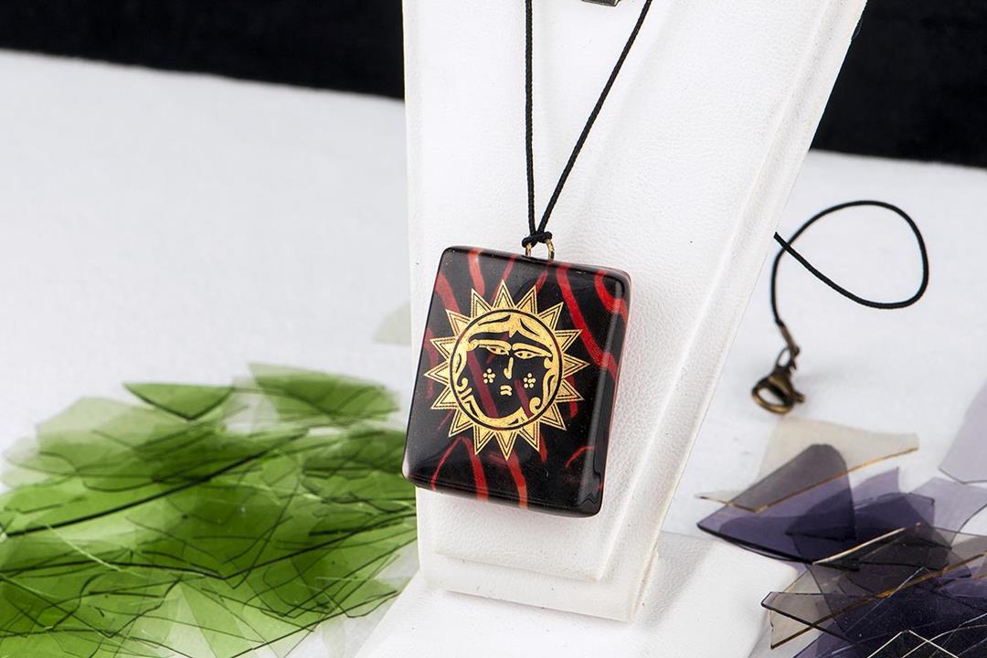 Cam füzyon kırmızı-siyah Anadolu medeniyeti kolye. %10 altın içerir