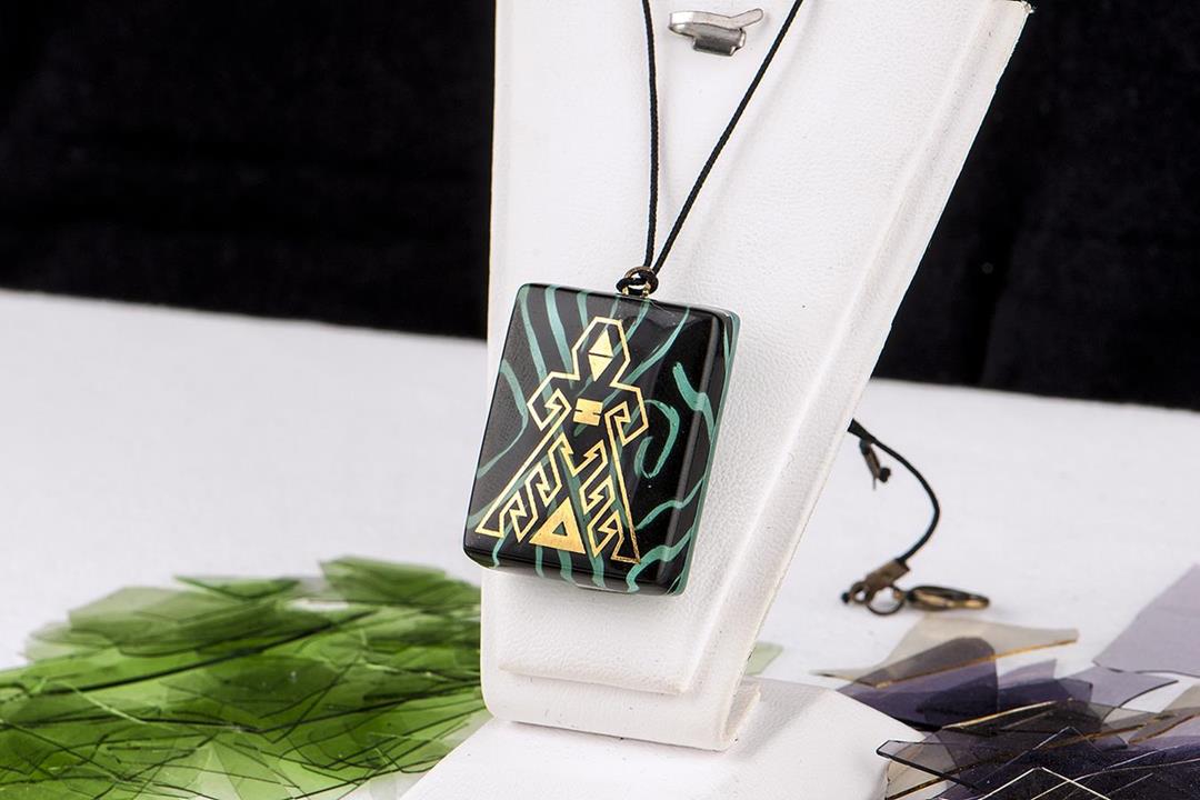 Cam füzyon yeşil-siyah Anadolu medeniyeti kolye. %10 altın içerir