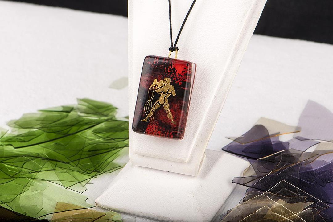 Cam füzyon mavi kova burcu kırmızı-siyah kolye. %10 altın içerir