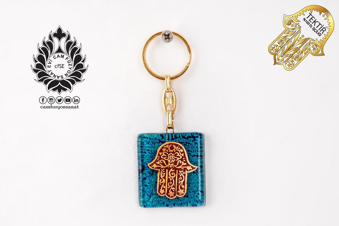 Cam füzyon bereket eli mavi anahtarlık. %10 altın içerir.