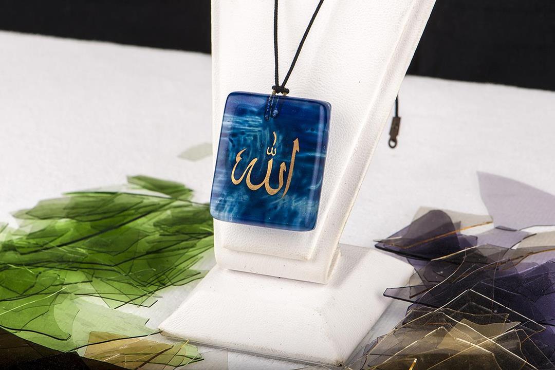 Cam füzyon mavi Allah kolye. %10 altın içerir