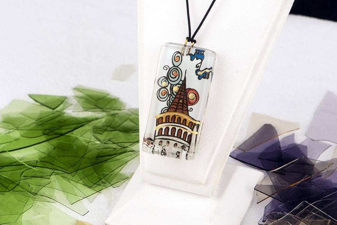 Cam füzyon minyatür galata kulesi kolye. %10 altın içerir.