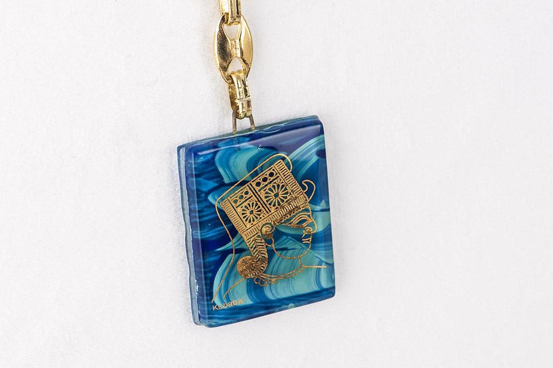 Cam füzyon Anadolu Medeniyeti turkuaz-mavi anahtarlık. %10 altın içerir.